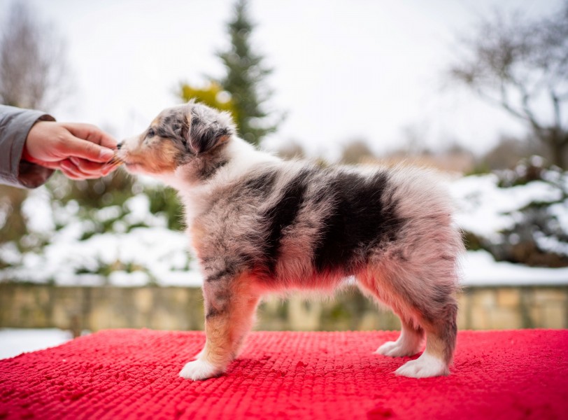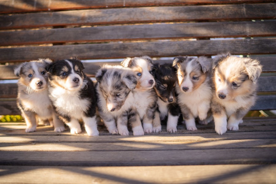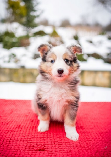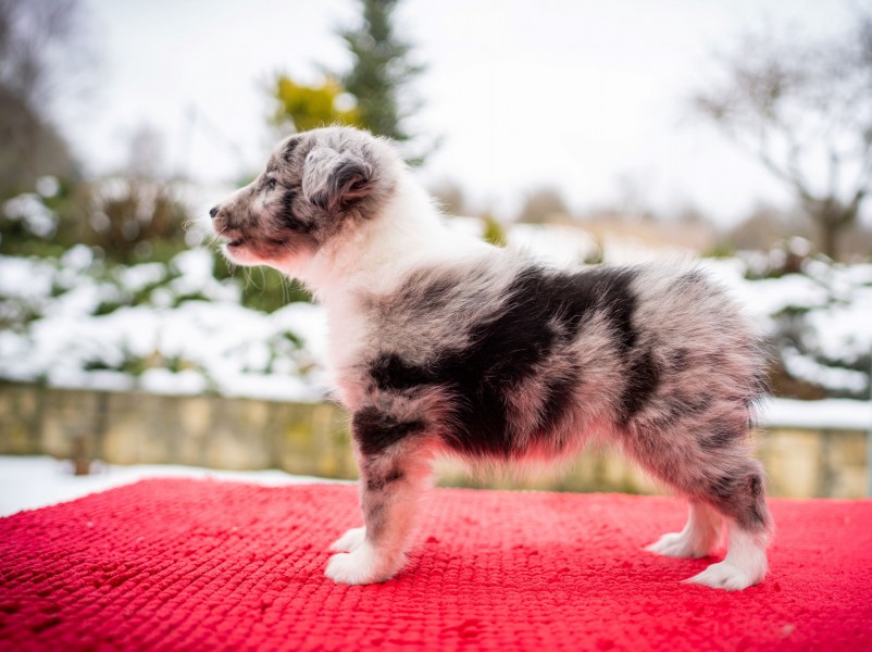 Štěnátka se narodila dne 29.11.2025 ve složení 3 blue merle fenky, 1 biblue fenka, 1 trikolorní fenka a 1 blue merle a 1 trikolorní pejsek.