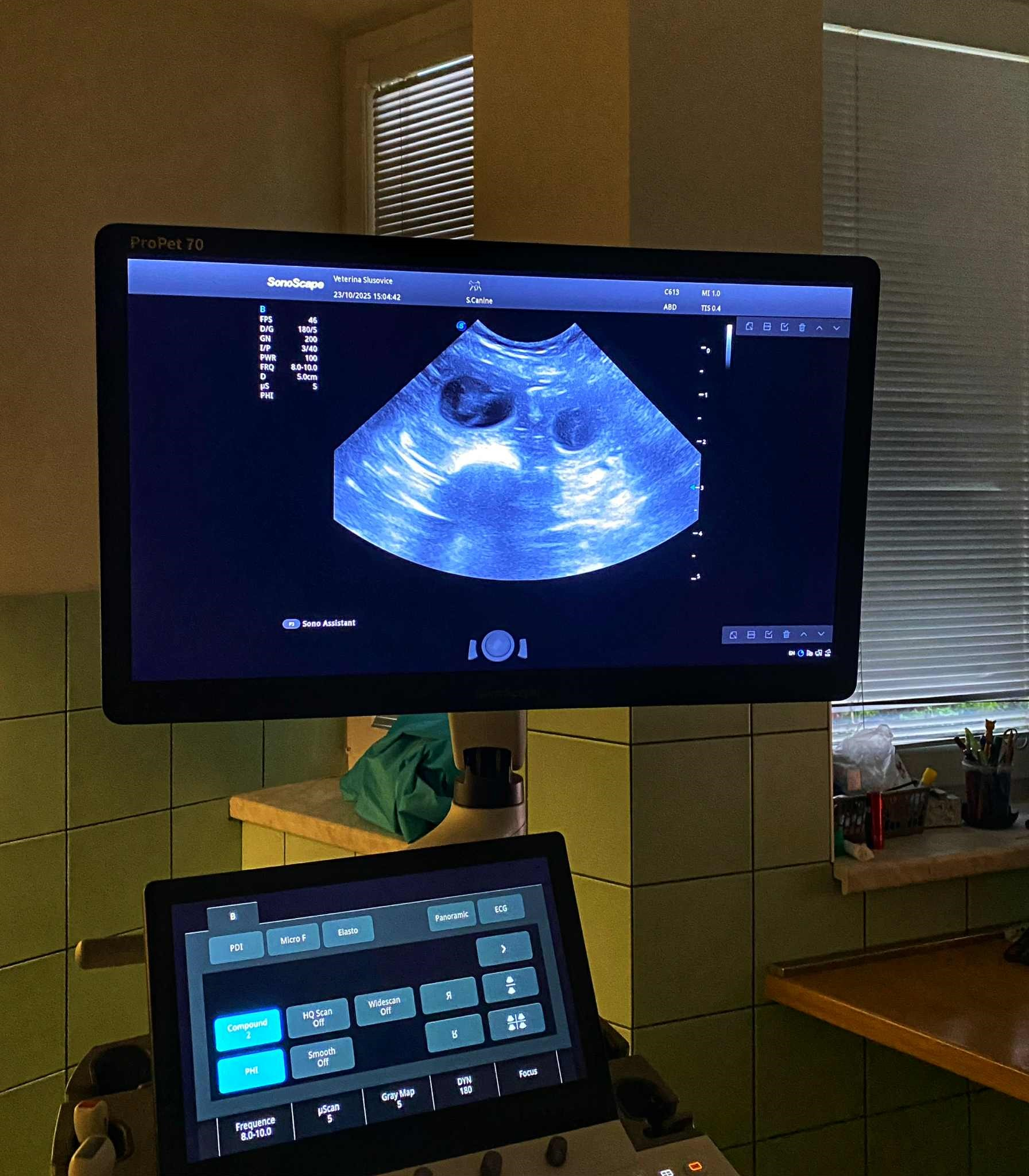 Největší novinkou letošního roku je, že před týdnem byla Ellie na sonu, které potvrdilo březost. Viděli jsme 4-5 štěňátek